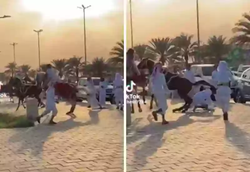 وثق مقطع فيديو متداول لحظة سقوط شاب من على ظهر الحصان أثناء الاحتفال باليوم الوطني.