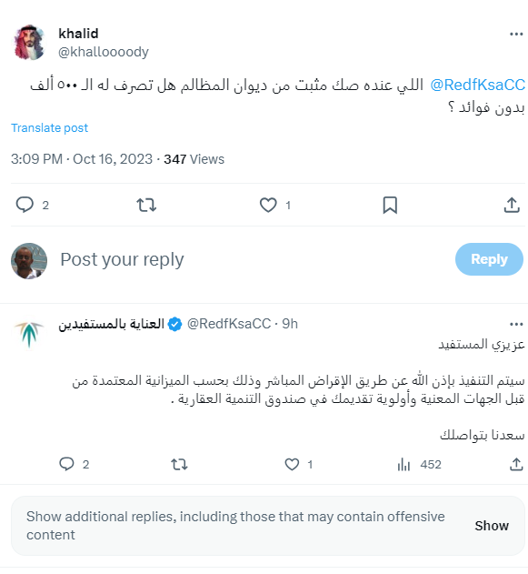 وقال الصندوق: “سيتم التنفيذ بإذن الله عن طريق الإقراض المباشر، وذلك بحسب الميزانية المعتمدة من قبل الجهات المعنية وأولوية تقديمك في صندوق التنمية العقارية”.