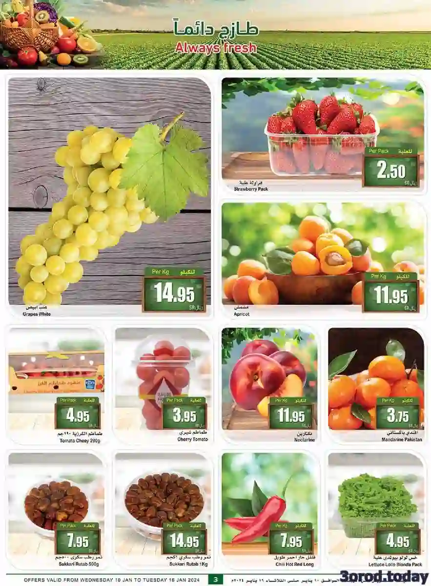 - تخفيضات على المشمش والعنب الأبيض والطماطم الكرزية.