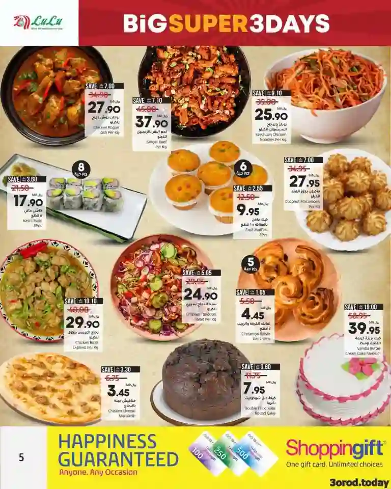 - تقدم لكم لولو اليوم خصومات على أسعار مناقيش الجبنة بالدجاج وكيكة الدبل شوكوليت الدائرية، بالإضافة إلى كيكة زبدة كريمة الفانيليا الوسط وسلطة دجاج التندوري.
