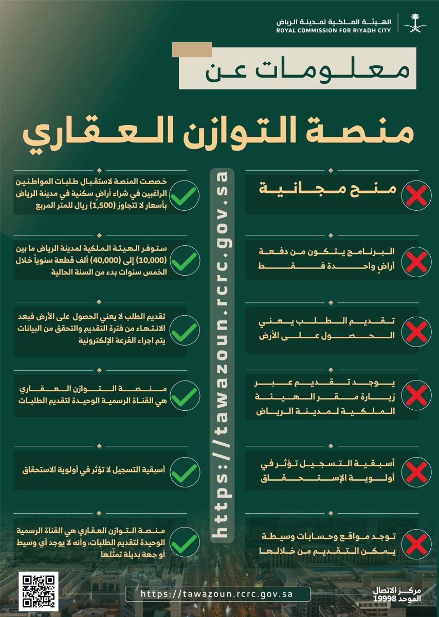 أكدت الهيئة الملكية أن منصة توازن هي القناة الرسمية الوحيدة لاستقبال الطلبات، ولا يوجد أي جهات أو وسطاء مخولون بالتسجيل أو بفرض رسوم إضافية.